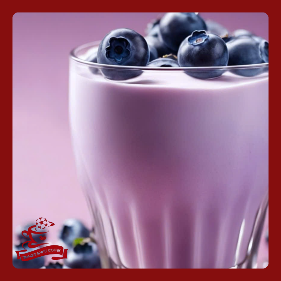 Một ly yogurt việt quất mát lạnh, sắc tím dịu nhẹ, vị chua ngọt lan tỏa nơi đầu lưỡi, mang lại cảm giác dễ chịu và thư giãn.